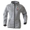 Taillierte Damen Fleecejacke im Trachtenlook mit Kapuze in hellgrau. Veredelt mit unserem Logostick Austrian Wear auf der Brust und dem Wappenadler auf dem Rücken.